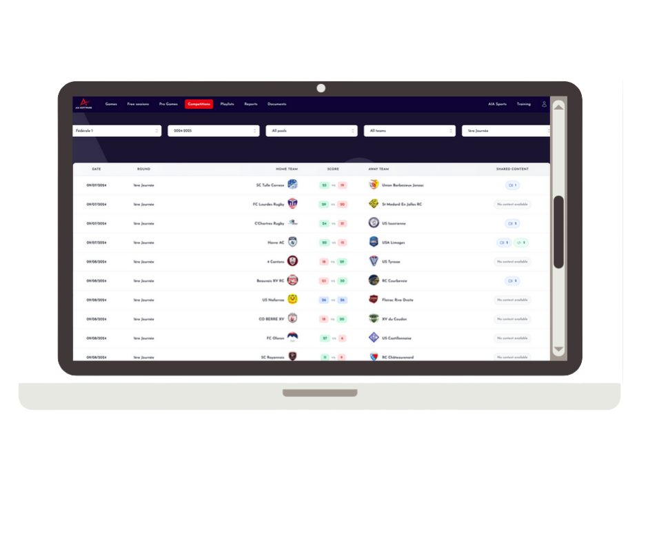 Multiple competitions use the system as a centralised match exchange platform. Either AIA Sports or the designated home team codes the collective match actions and shares both video and data across the competition or partner organisations.
